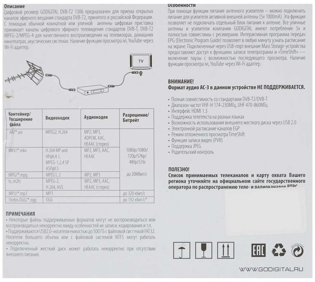 ТВ-тюнер GoDigital 1306 DVB-T2 черный интересное: