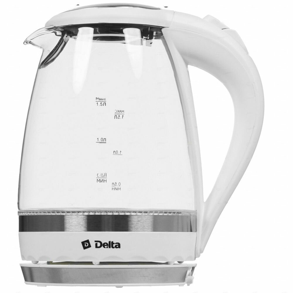 Чайник электрический Delta DL-1202 стекло белый 1,5л 2200Вт