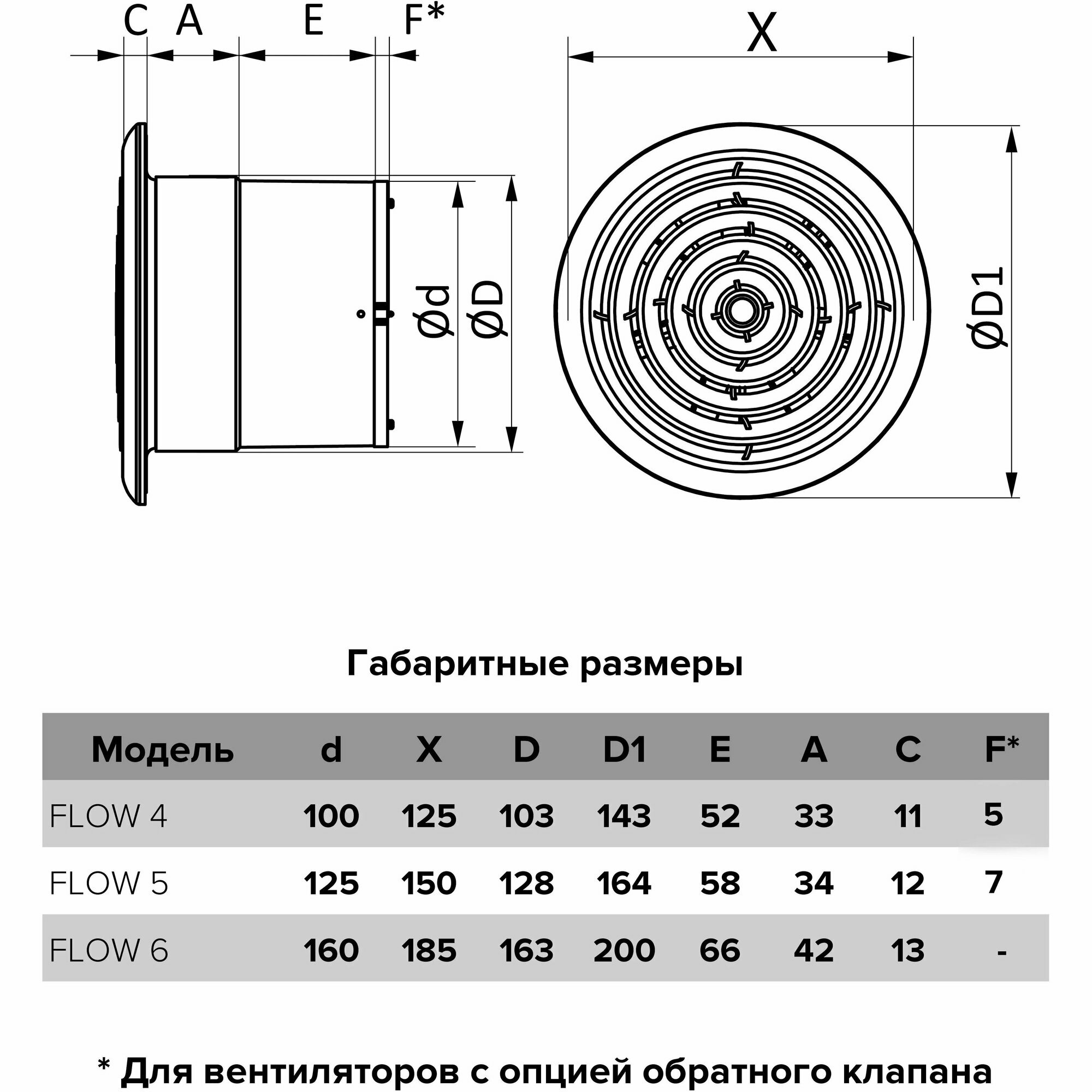 FLOW 5 C BB, Вентилятор осевой с обратн. клапаном, круглой решеткой, двигателем на ш/подшип D 125