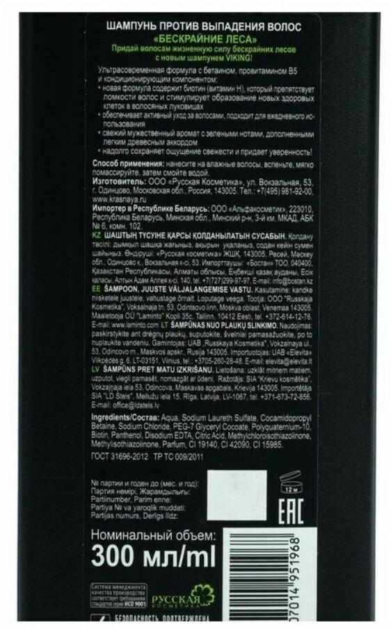 КЛ Викинг Шампунь против выпадения волос Бескрайние леса /300 мл