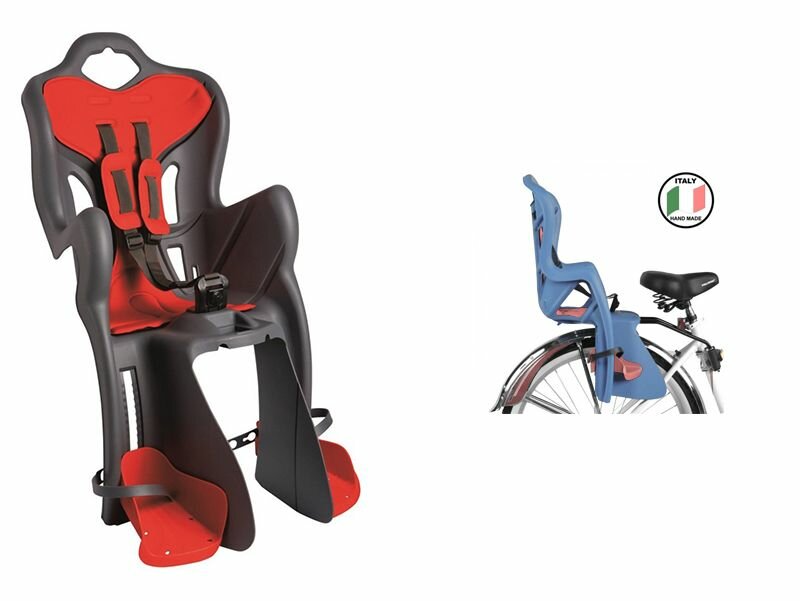 BELLELLI Сидение заднее B-One Standard, на велосипед 29", тёмно-серое с красной вставкой до 22кг