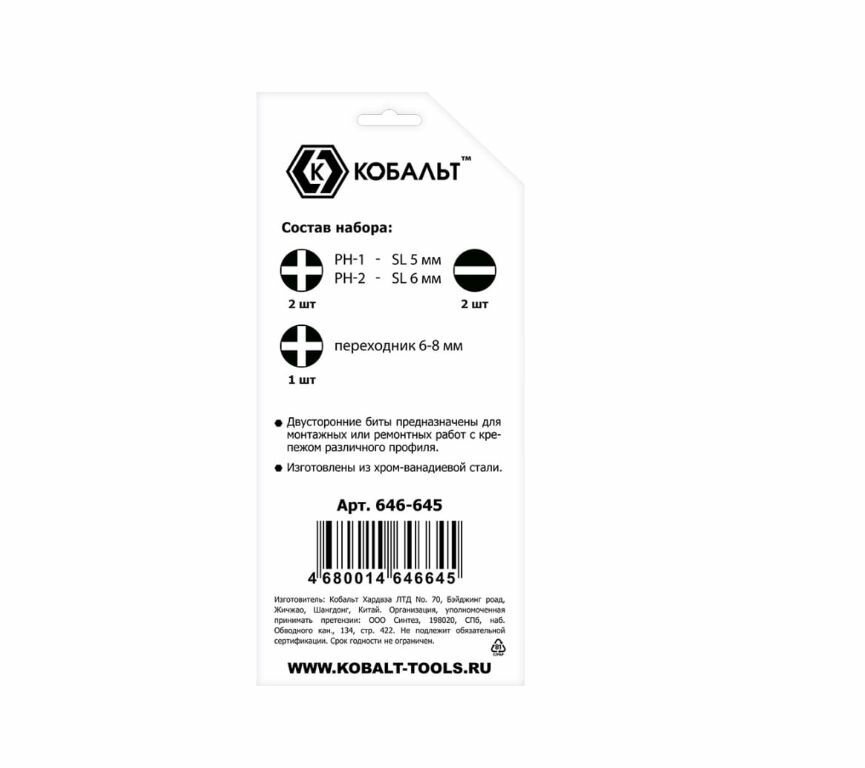 | Биты подробно | 1/4": PH1/SL5, PH2/SL6 |