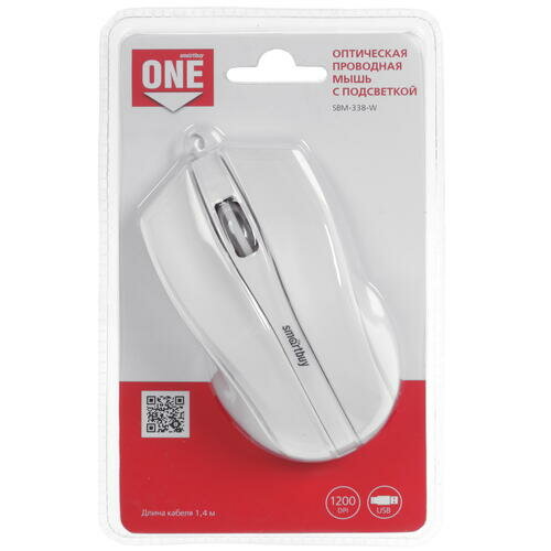 Мышь проводная с подсветкой Smartbuy ONE 338 USB/DPI 1200/3 кнопки/LED/1.4м белая (SBM-338-W)