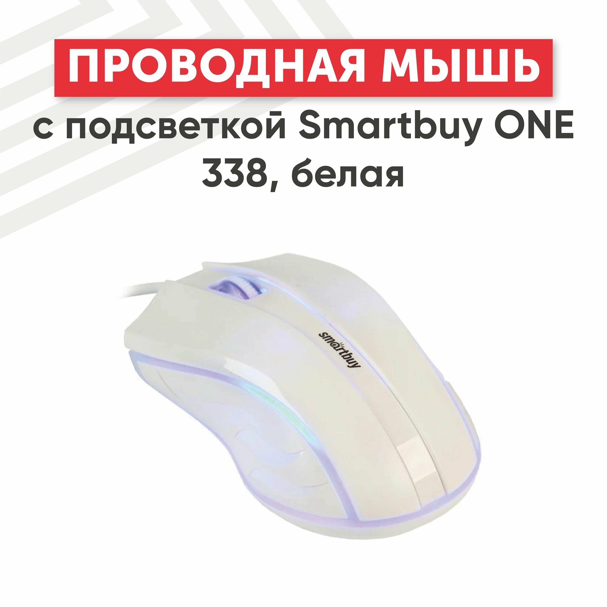 Купить Мышь Smartbuy ONE 338, USB, с подсветкой, белый, 2btn+Roll (арт. 265699)