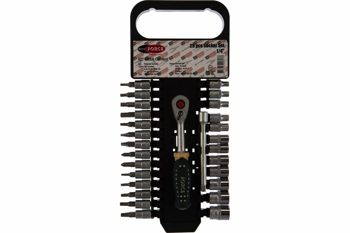 Набор торцевых головок и бит ROCKFORCE 1/4 DR 6-гранных 28 предметов пластиковый держатель
