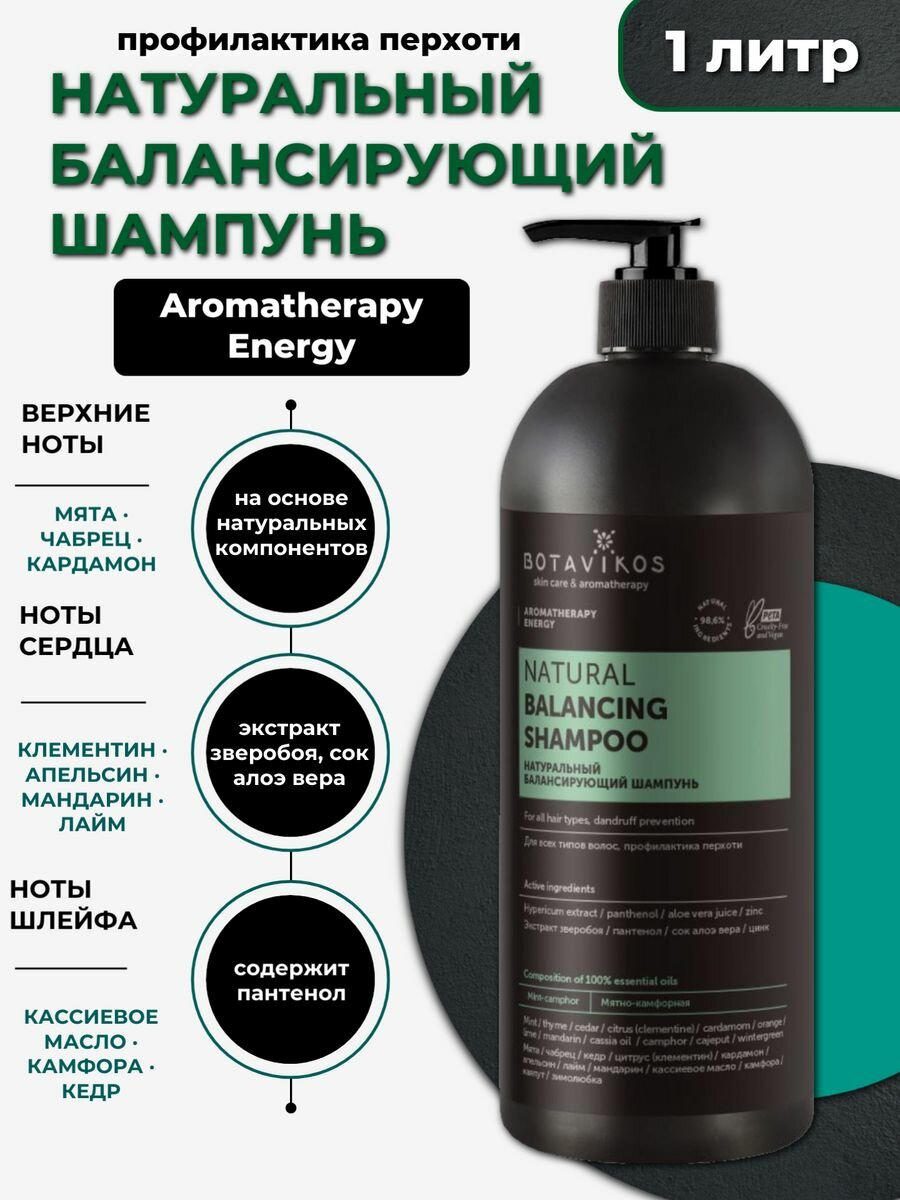 Натуральный балансирующий шампунь Aromatherapy Energy, против перхоти, 1000 мл
