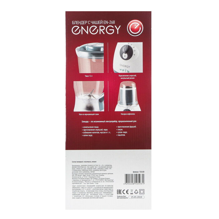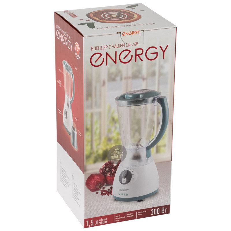 Ниже Вы можете прочитать отзывы на Блендер Energy EN-268, 300Вт, 4 скор., чаша 1,5л, кофемолка 152458, ознакомится с подробными характеристиками, посмотреть интересные обзоры и фотографии на Блендер Energy EN-268, 300Вт, 4 скор., чаша 1,5л, кофемолка 152458.