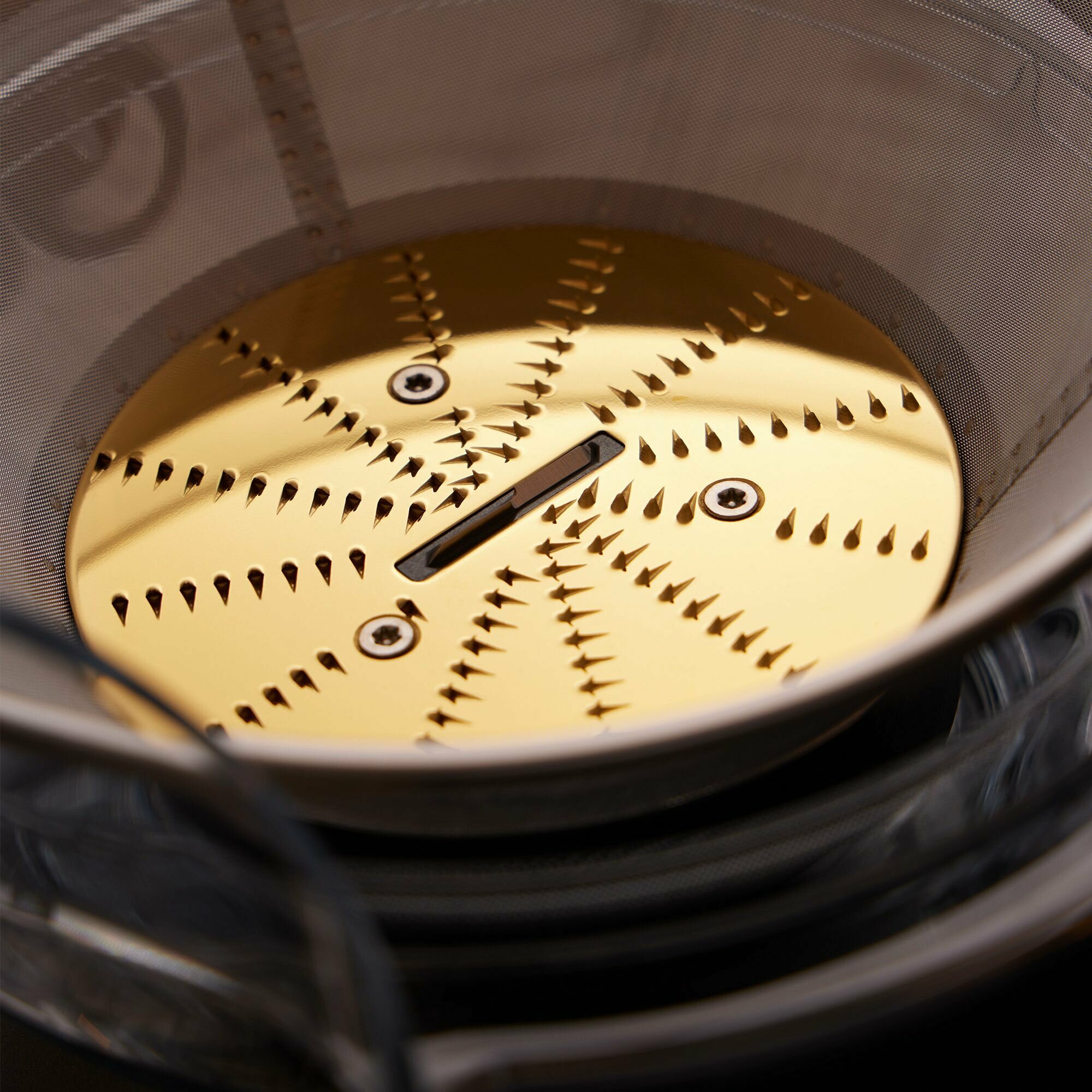 | Минусы: | Высокая цена. Низкий выход сока, т. к. перемолотый жмых по сути сорой в нем еще очень много сока, если его собрать в сетку и механически отжать - с килограмма пожалуй на стакан хватит. Как пишут в других отзывах у меня также забивается центрифуга. Держать такую махину на кухне чтобы отжать 3 кило овощей или фруктов слишком накладно. |