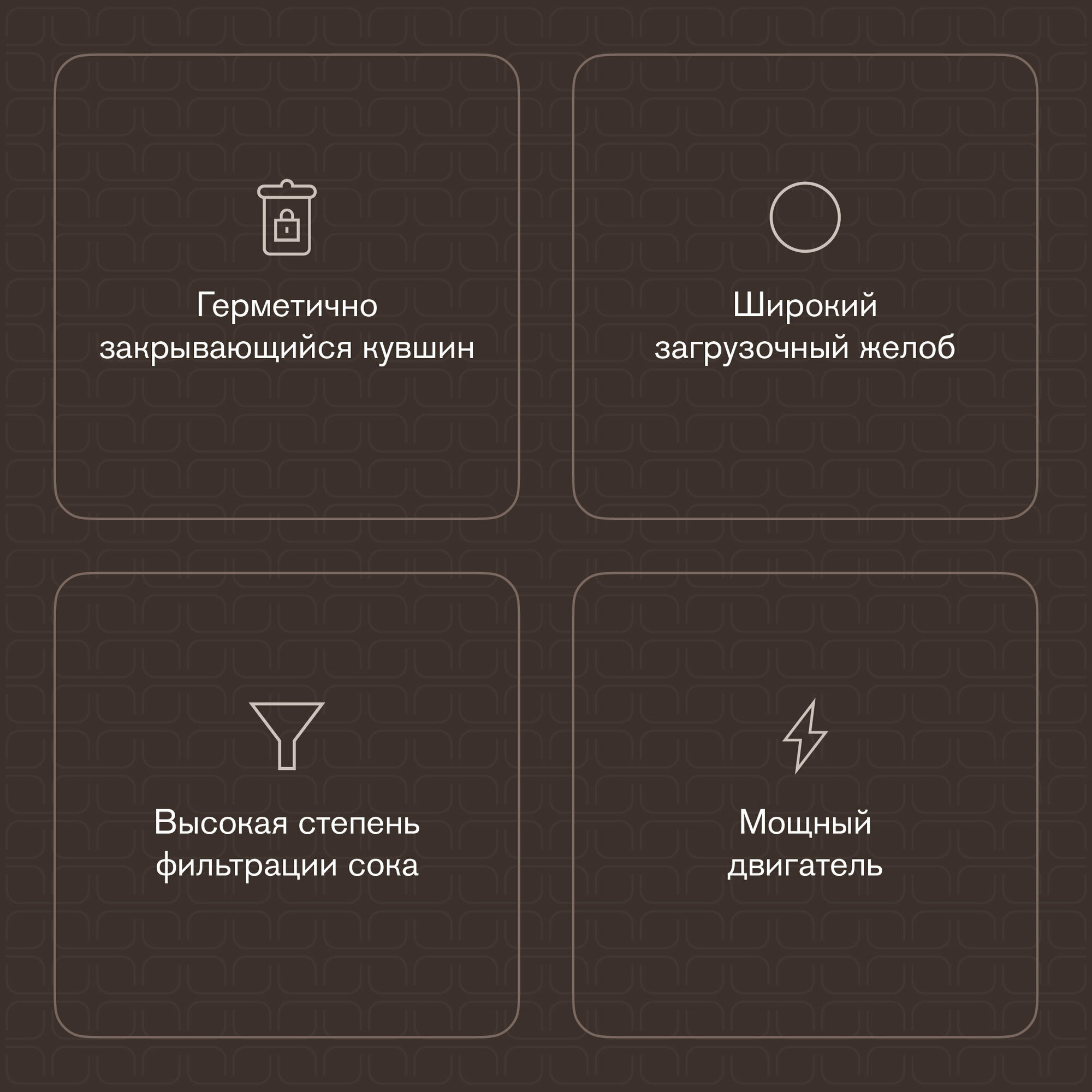 | Плюсы: | Нам понравилась соковыжималка BORK S810 |