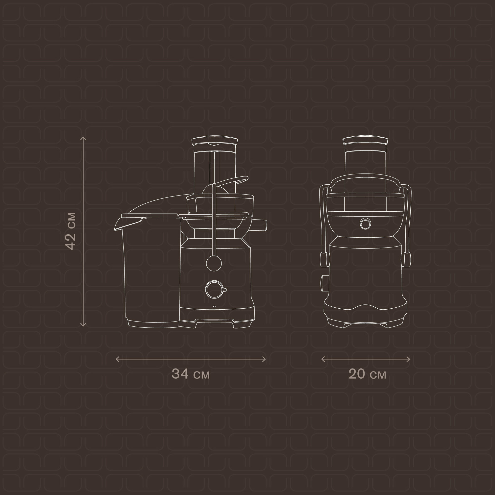 | Плюсы: | Мощность, широкий желоб, время работы, дизайн, качество отжима любого вида продуктов. |