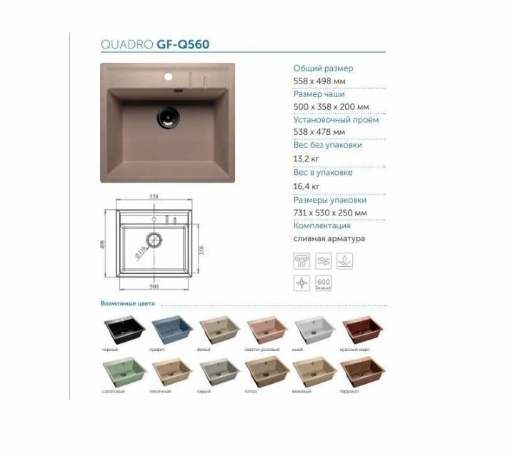 СохранитьВрезная кухонная мойка 55.8 см, GranFest Quadro GF-Q560, бежевый интересное: