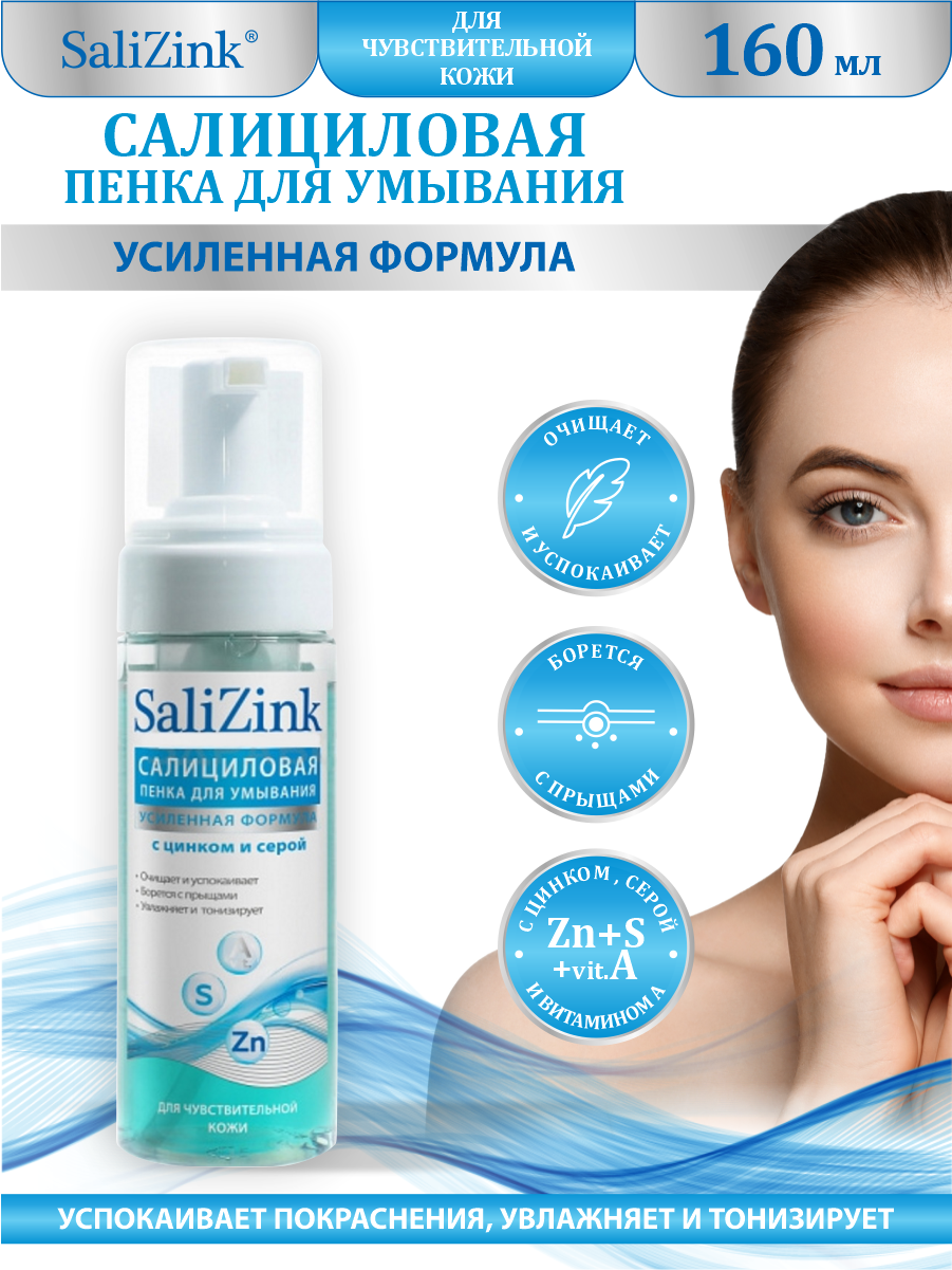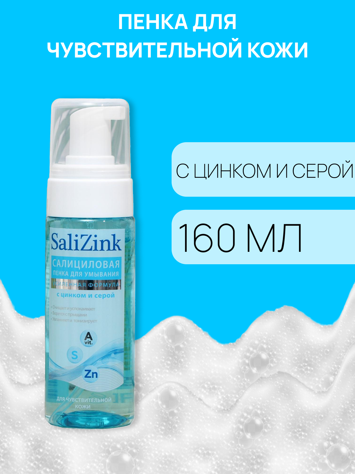 Salizink Салициловая пенка для умывания с цинком и серой для чувствительной кожи, 160 мл