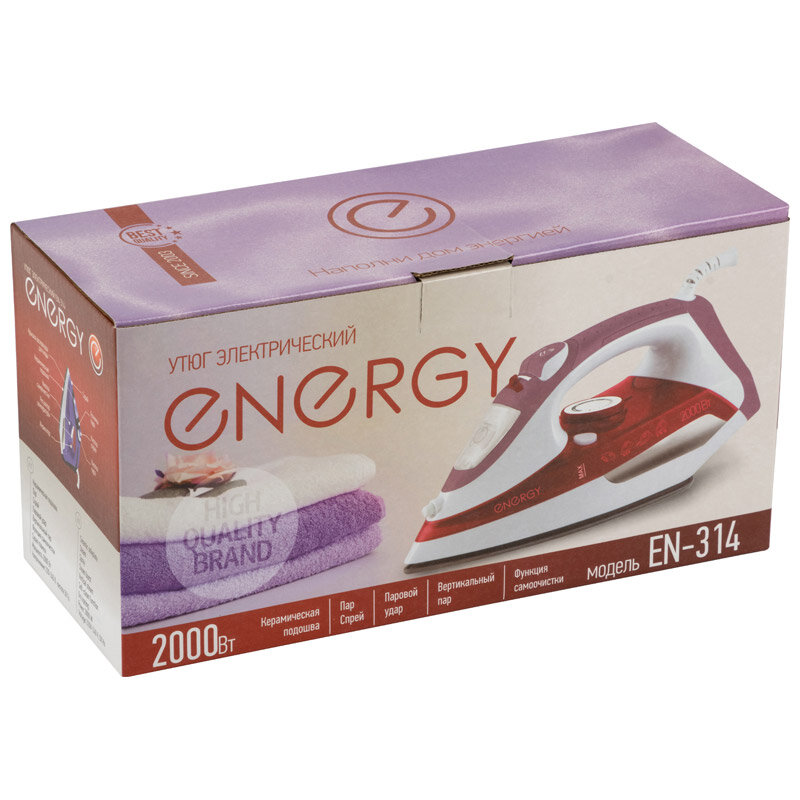 Утюг ENERGY EN-314, 2000 Вт, керамическая подошва, 300 мл, фиолетовый Energy 1743794 .