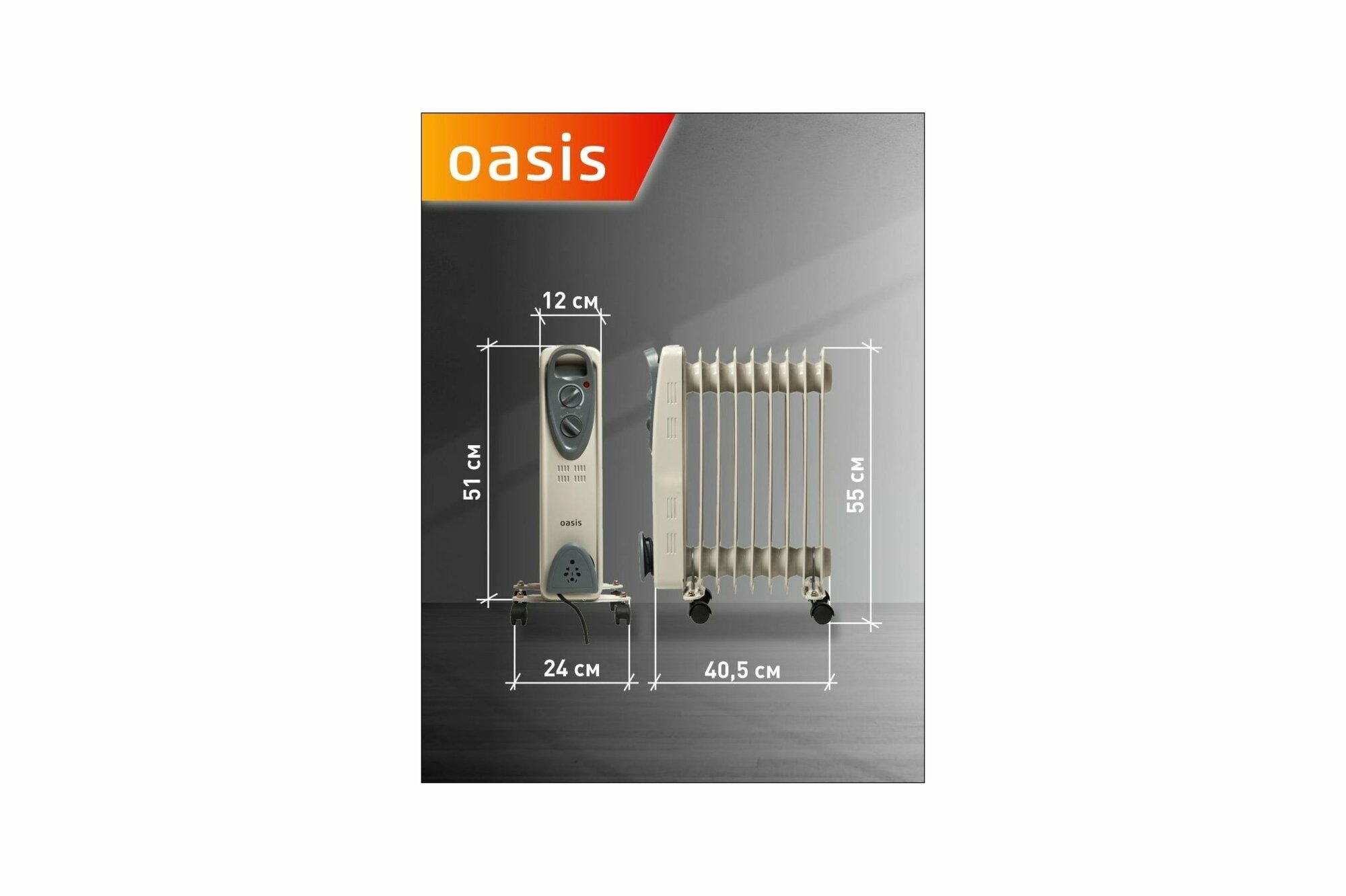 Радиатор масляный Oasis UT-20, 9 секций 2000Вт