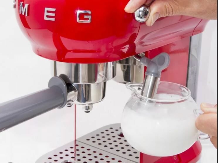 Кофемашина-эспрессо SMEG/ стиль 50-х годов, Материал корпуса: окрашенный металл + цветной пластик, Капучинатор из нерж. стали,