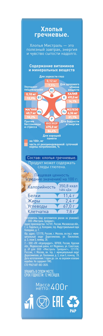 Хлопья Мистраль Гречневые 400 г интересное:
