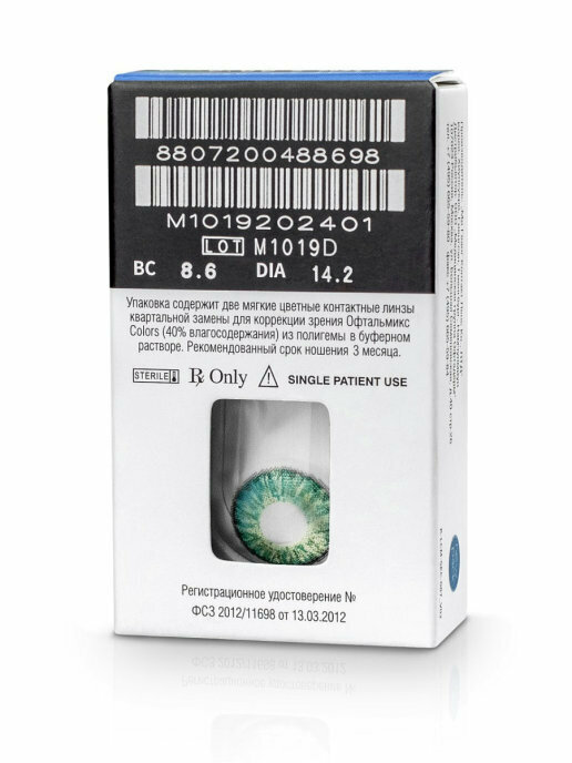 Контактные линзы Офтальмикс Colors R 8.6, D -8.5, Бирюзовые, DIA 14.2, 2 линзы