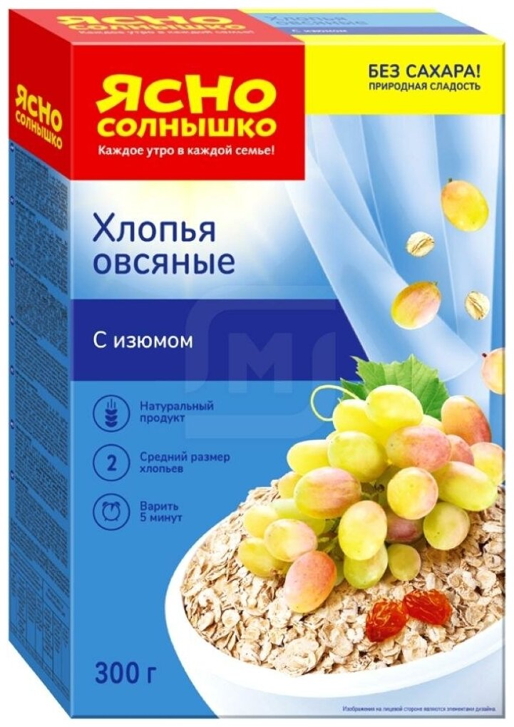 Хлопья овсяные с изюмом кор. 300 г т/м Ясно солнышко интересное: