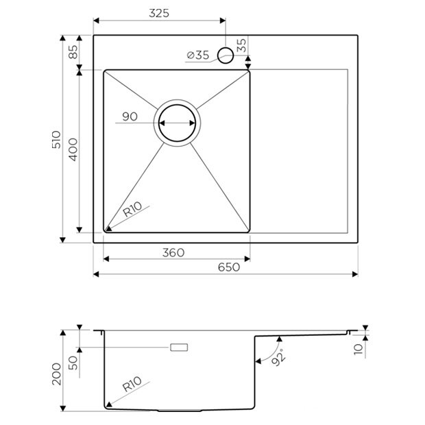 Мойка нержавеющая для кухни Omoikiri Akisame 65-IN-L 650х510 мм 4973058 нержавеющая сталь