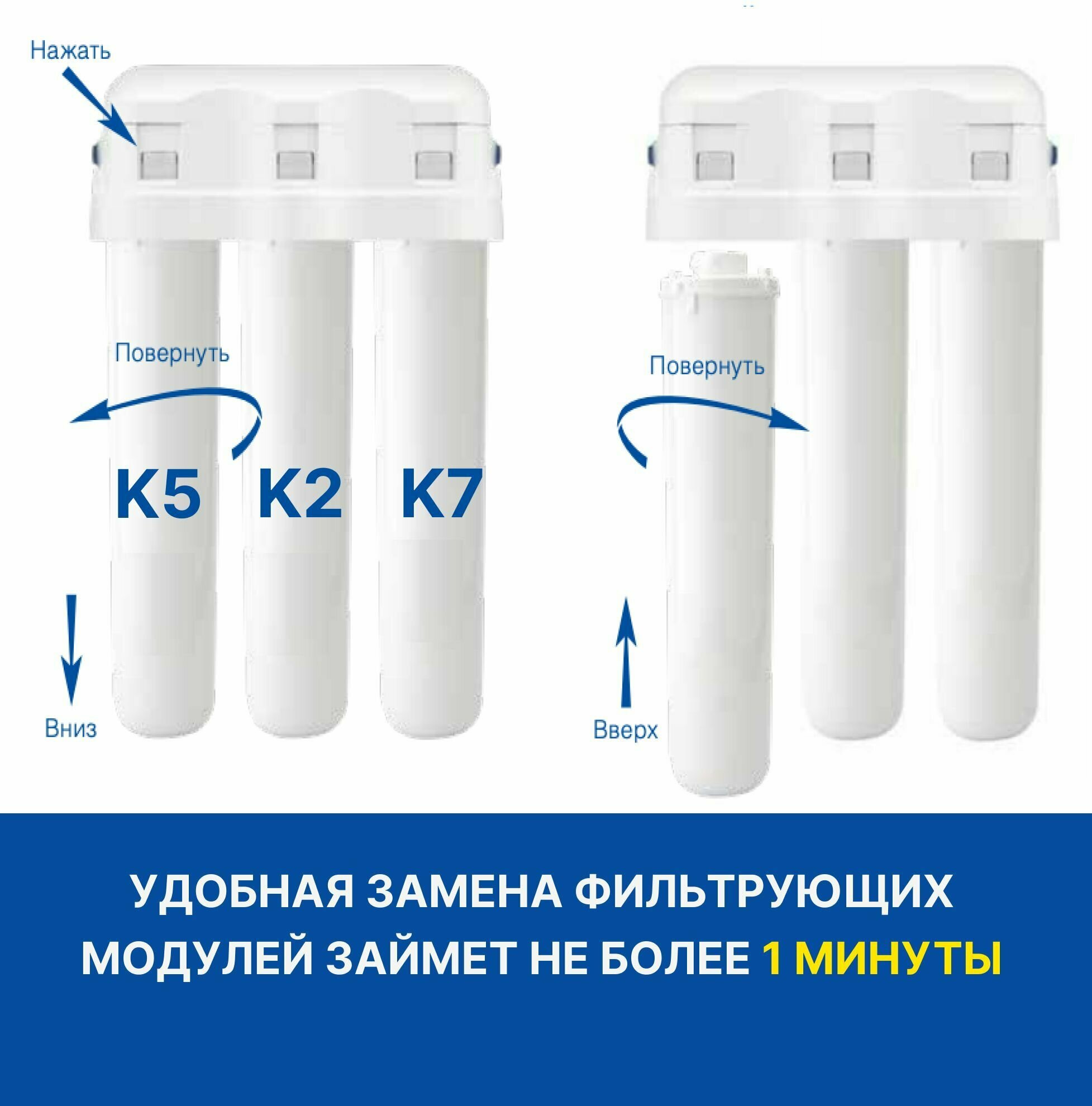 Система для фильтрации воды Кристалл А, К5/К7/К2, 26x9x35 см, с краном, 2 л/мин