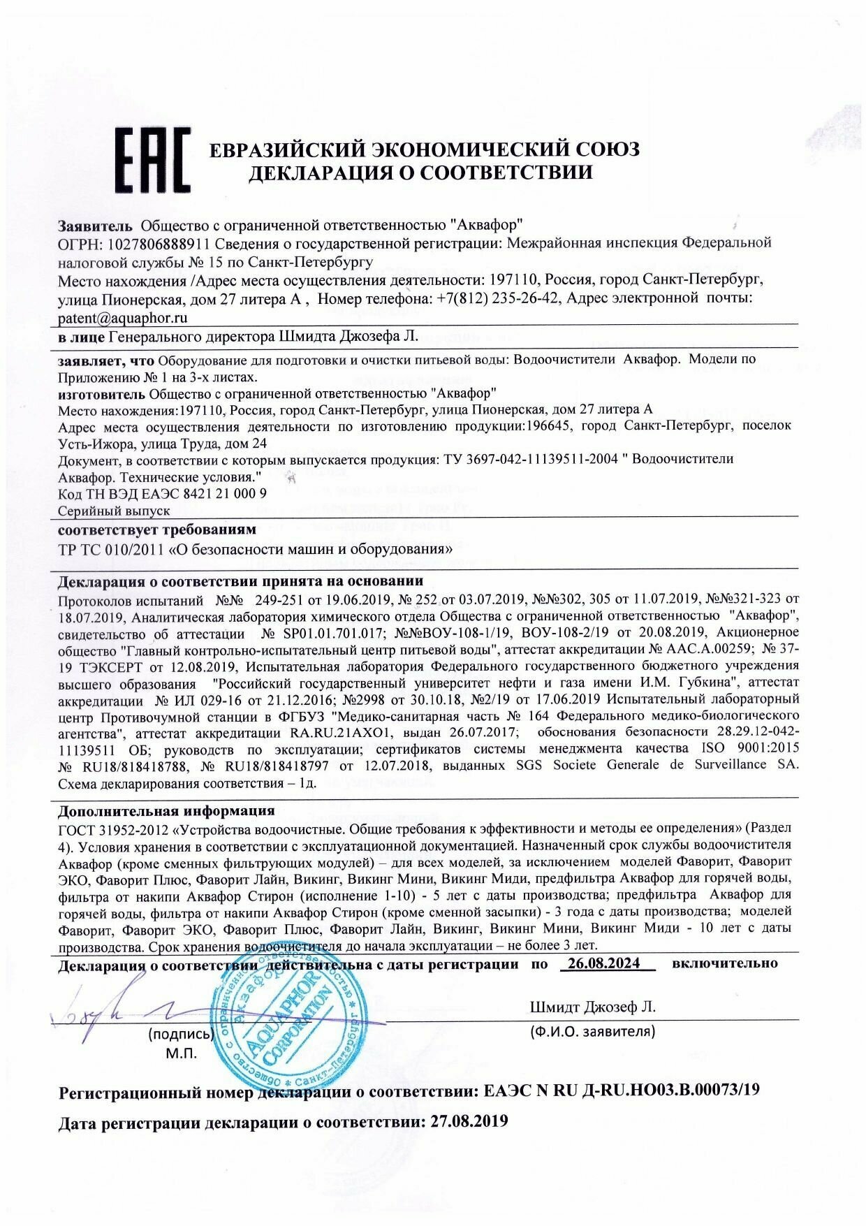 Водоочиститель Аквафор Кристалл А (исполнение 2) .