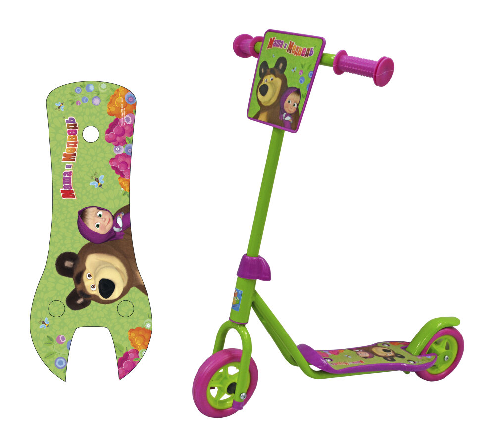Детский 2-колесный городской самокат 1 TOY Т59569 Маша и Медведь, зеленый/розовый интересное: