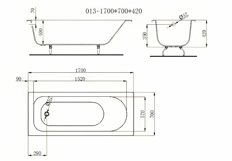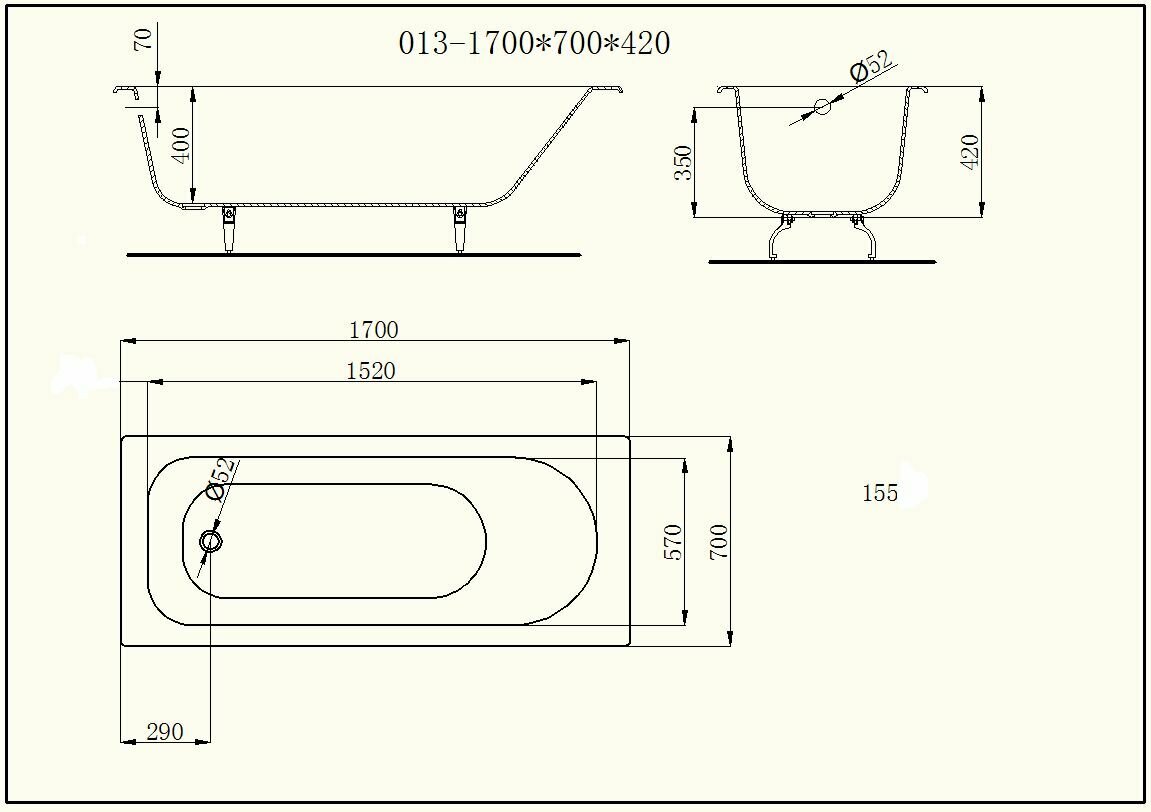 Чугунная ванна Byon B13 170x70x42 интересное:
