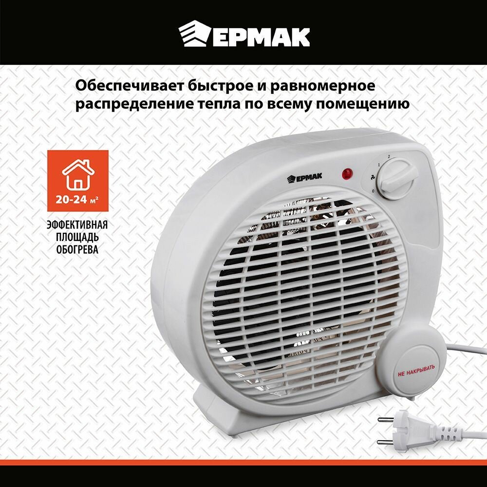 Купить Тепловентилятор ермак ТВ-2002, 3 режима, 1000/2000 Вт, защита от перегрева, индикатор включения
