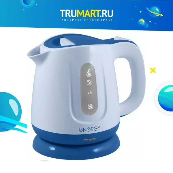 Чайник электрический ENERGY E-234, пластик, 1 л, 1100 Вт, бело-синий