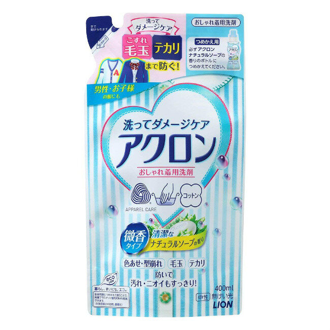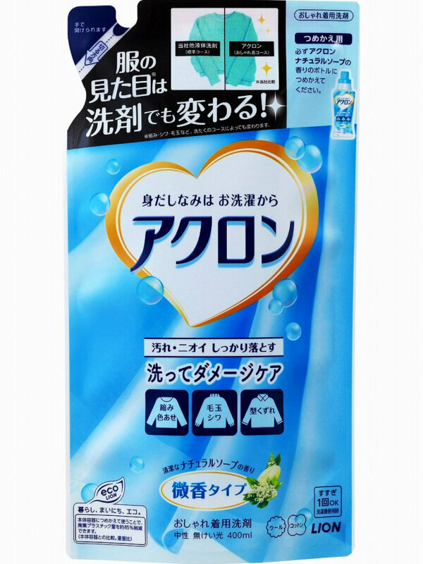 LION Жидкое средство для стирки деликатных тканей, шерсти ACRON, аромат мыла, сменная упаковка 400 мл.