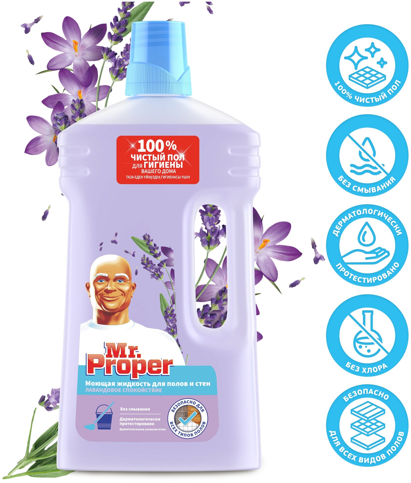 Mr. Proper Средство для мытья пола и стен 750 мл, MR. PROPER (Мистер Пропер) "Лавандовое спокойствие"