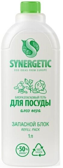 Купить Synergetic Антибактериальный гель для мытья посуды Алоэ вера сменный блок, 1 л, 1.06 кг