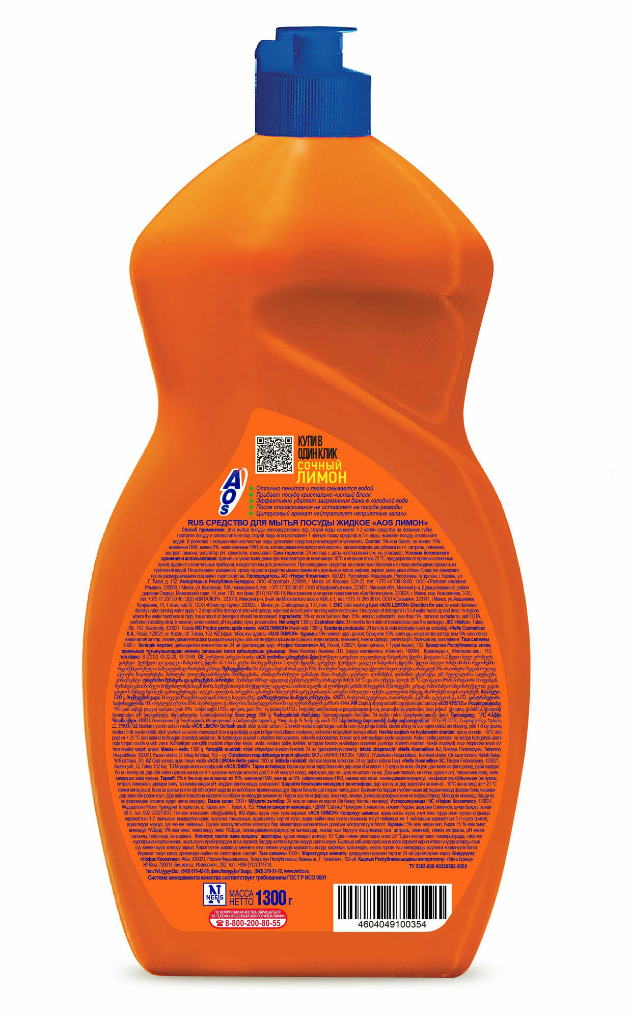 AOS Средство для мытья посуды Лимон, 1.3 кг