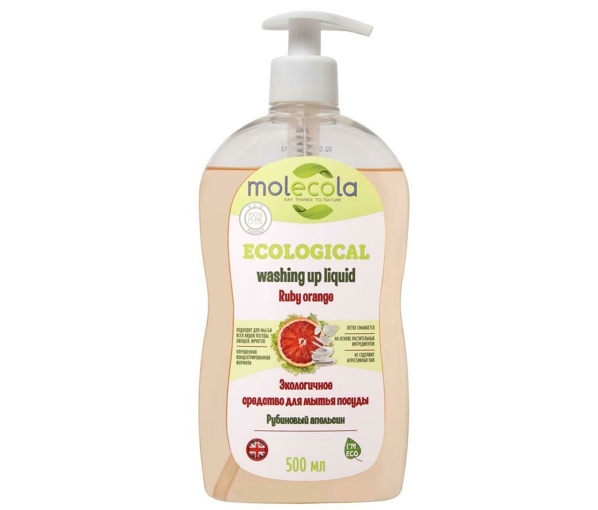 MOLECOLA Экологичное конц-ное ср-во д/мытья посуды Рубиновый апельсин, 500 мл