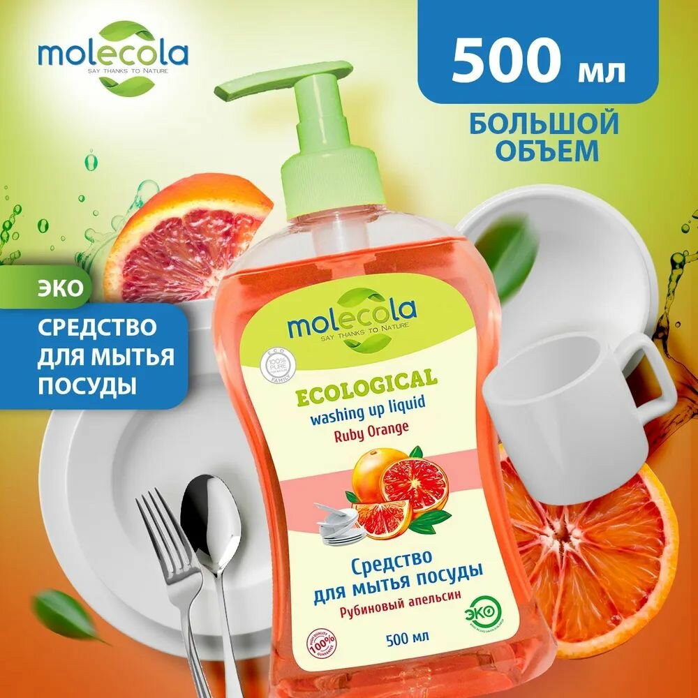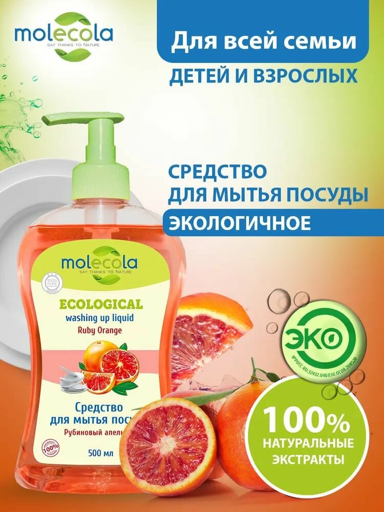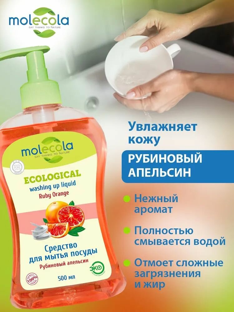 MOLECOLA - Средство для мытья посуды Рубиновый апельсин экологичное, 500 мл