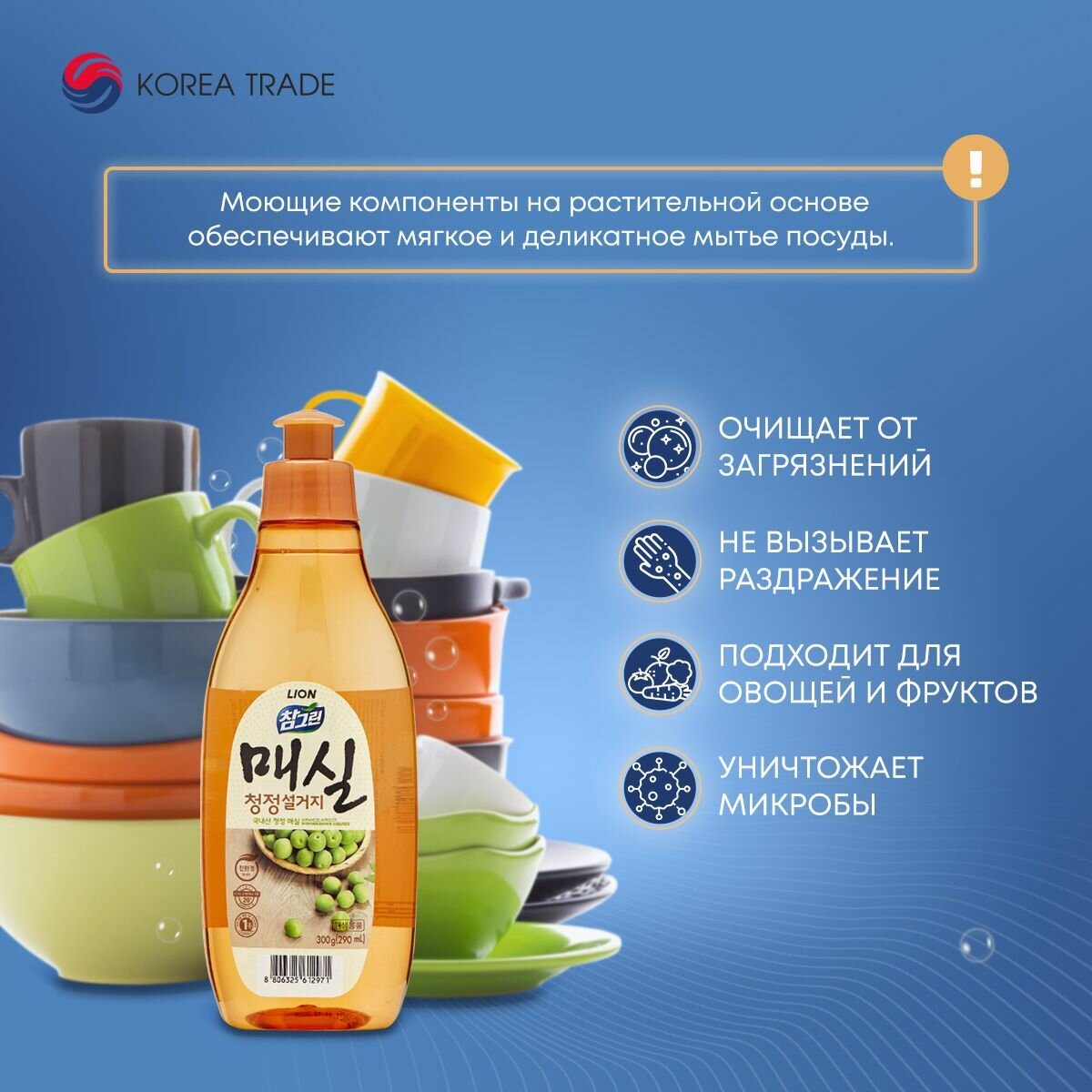 | Плюсы: | Изготовиткль Корея! Прятно пахнет, хорошо отмывает жир с посуды. Подходит для мытья овощей фруктов. Антибактерецидные свойства. |