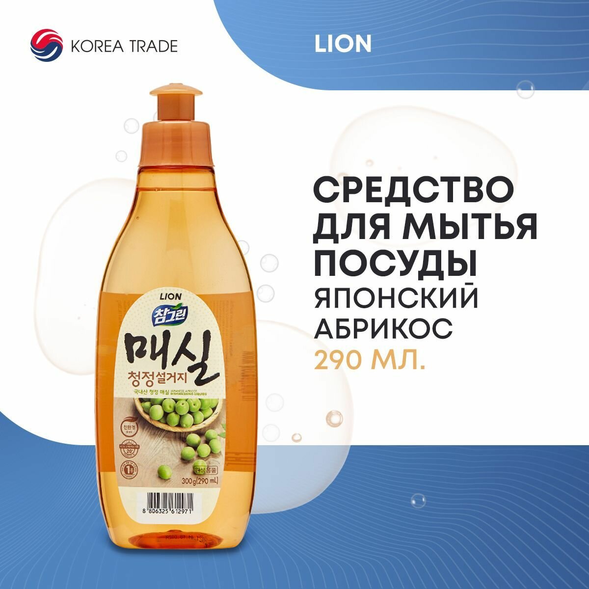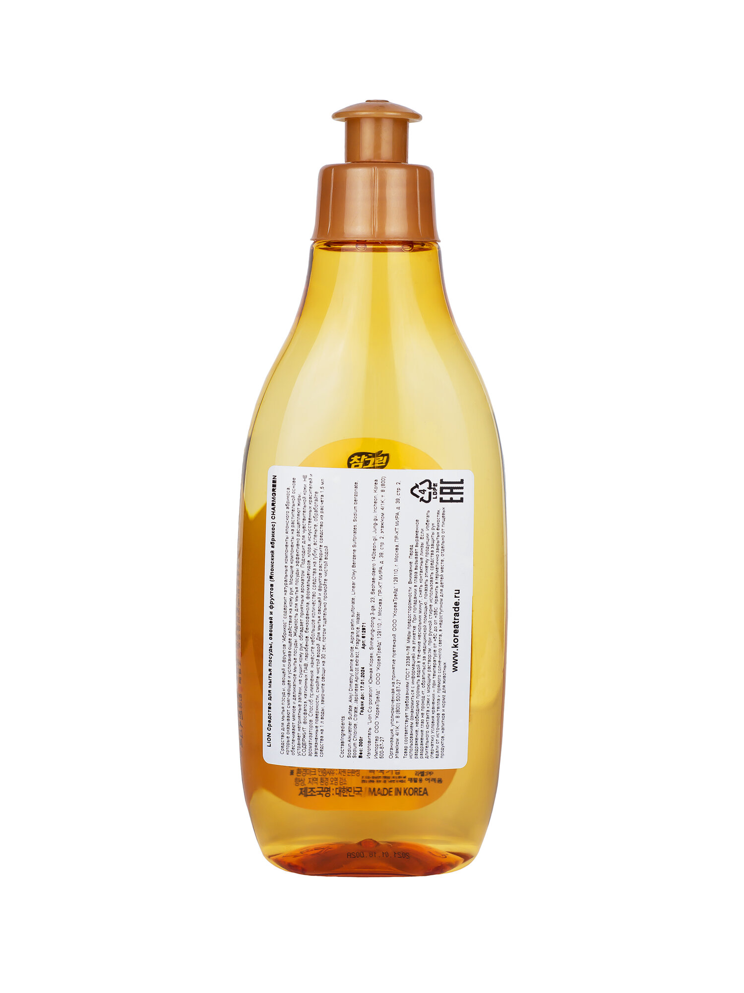 Средство для мытья посуды, овощей и фруктов 480 мл, CHAMGREEN японский абрикос, Lion, 8806325612254