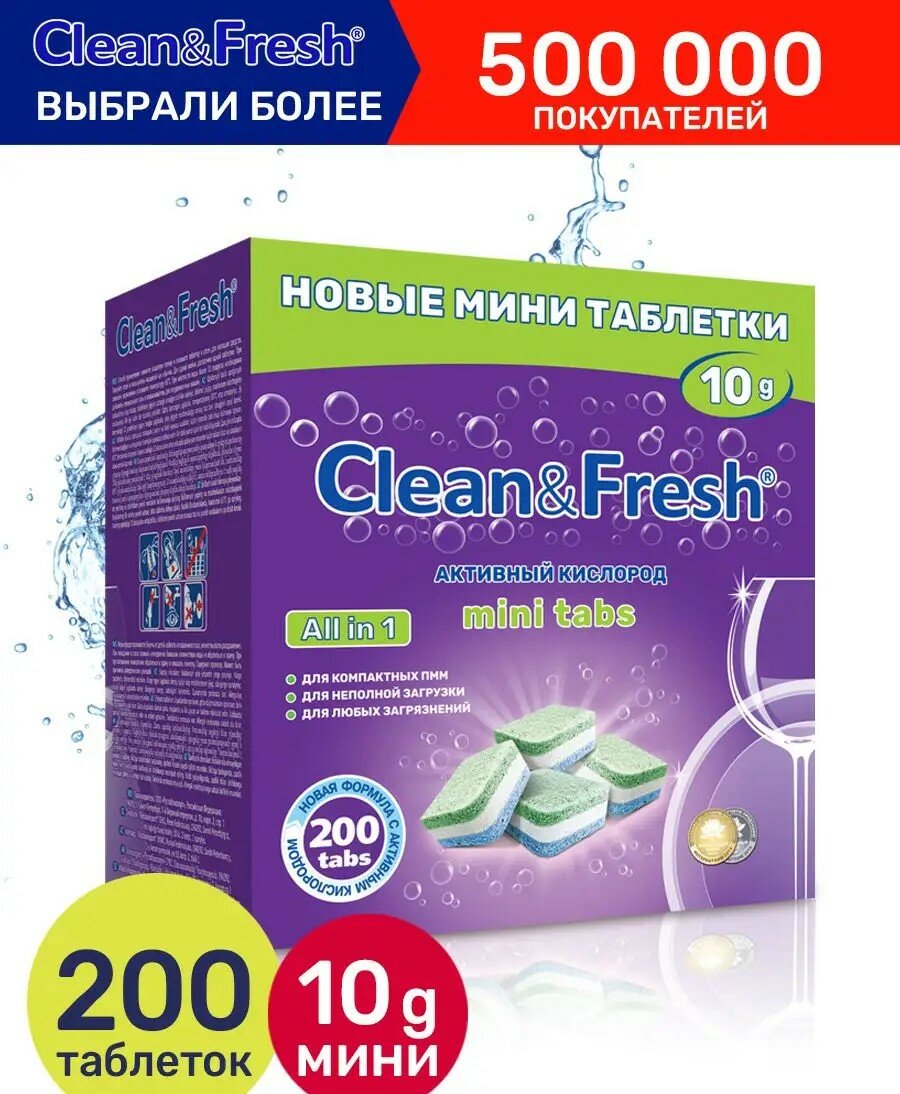 Clean & Fresh Таблетки для посудомоечной машины All in 1 mini, 200шт