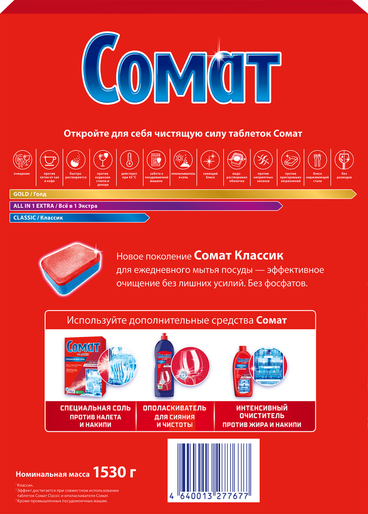 Таблетки для посудомоечной машины Somat Classic таблетки, 120 шт., коробка