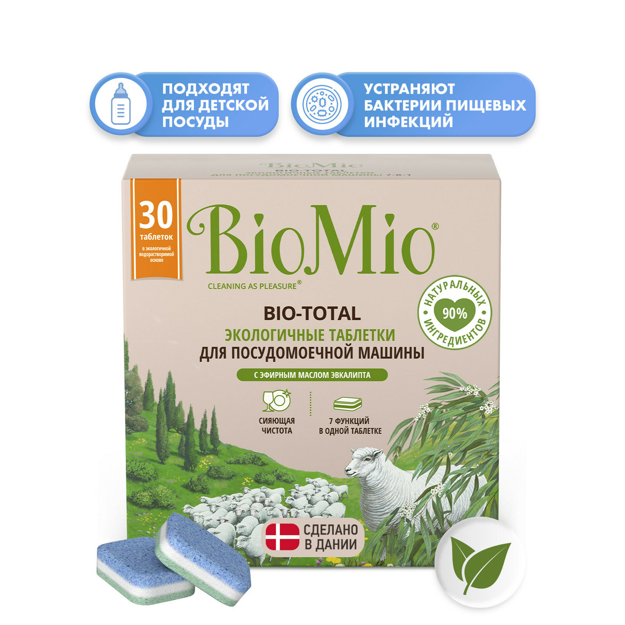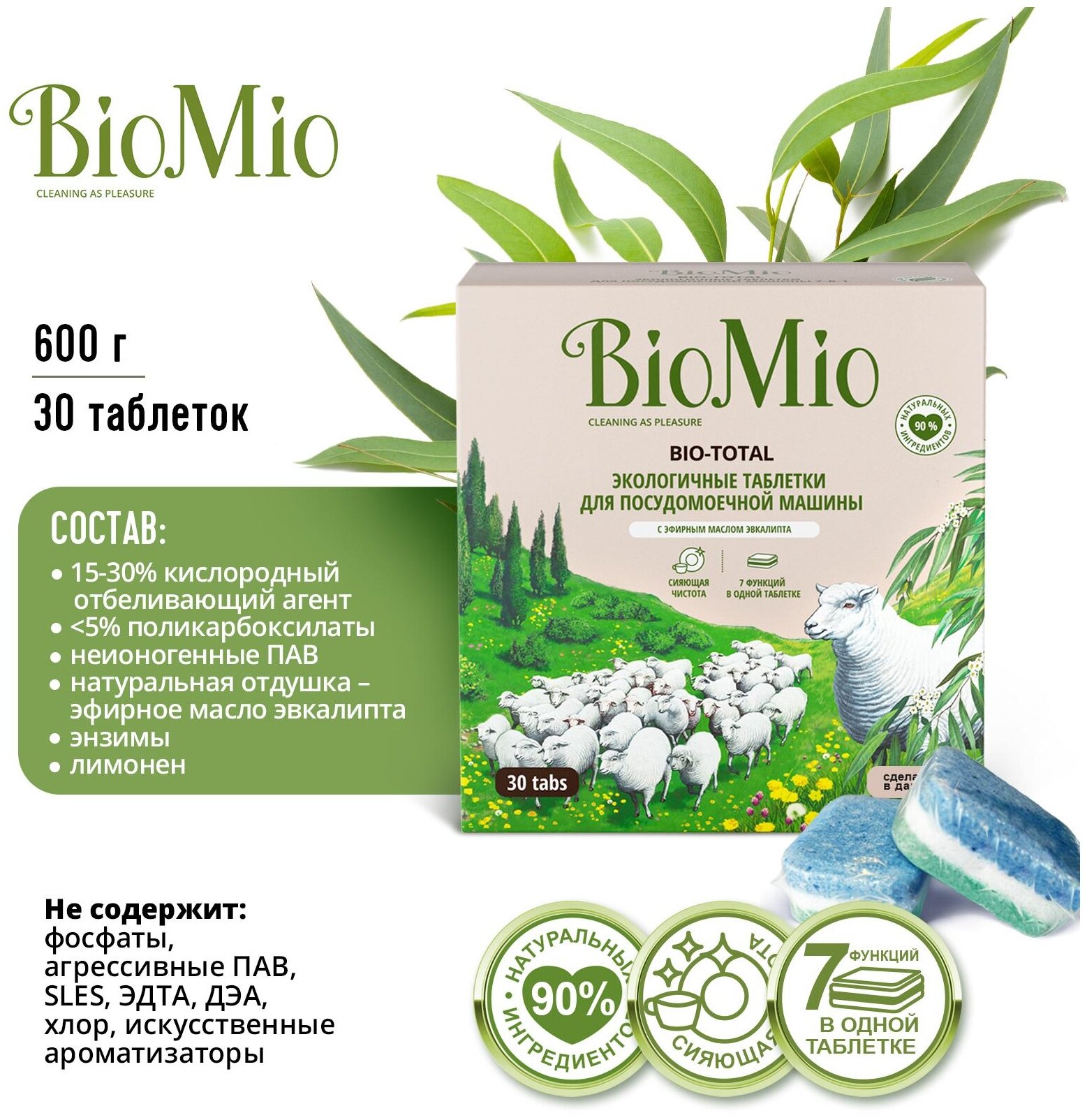 BioMio Таблетки для посудомоечных машин BIO-TOTAL, эвкалипт, 30 шт