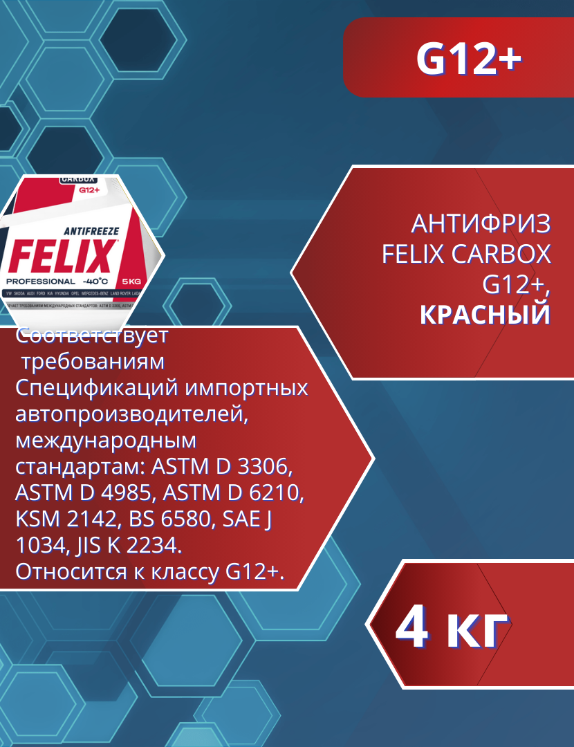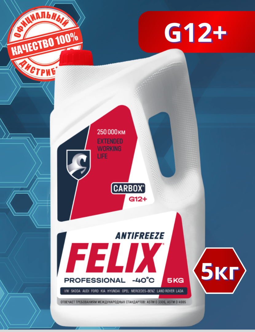 Антифриз FELIX Carbox, красный, -40С, G12+, 5 кг ; Абу-Даби - Ограниченная Серия