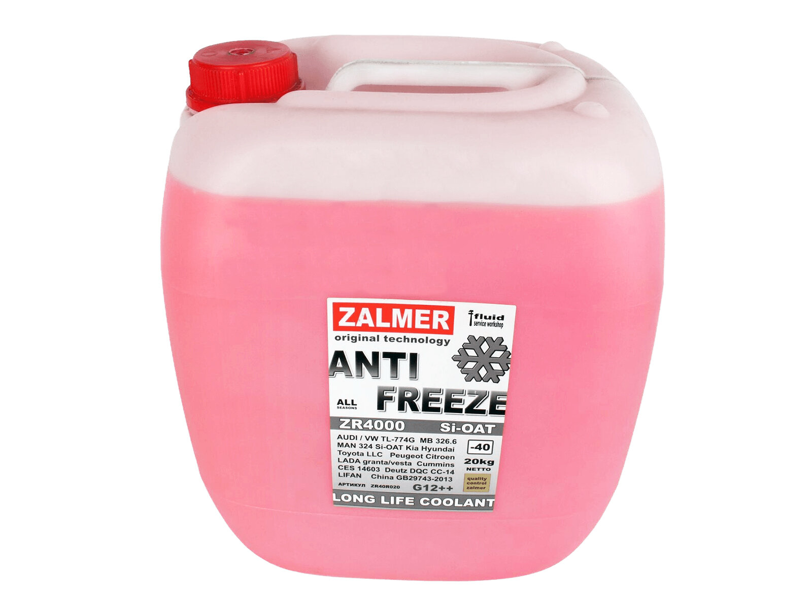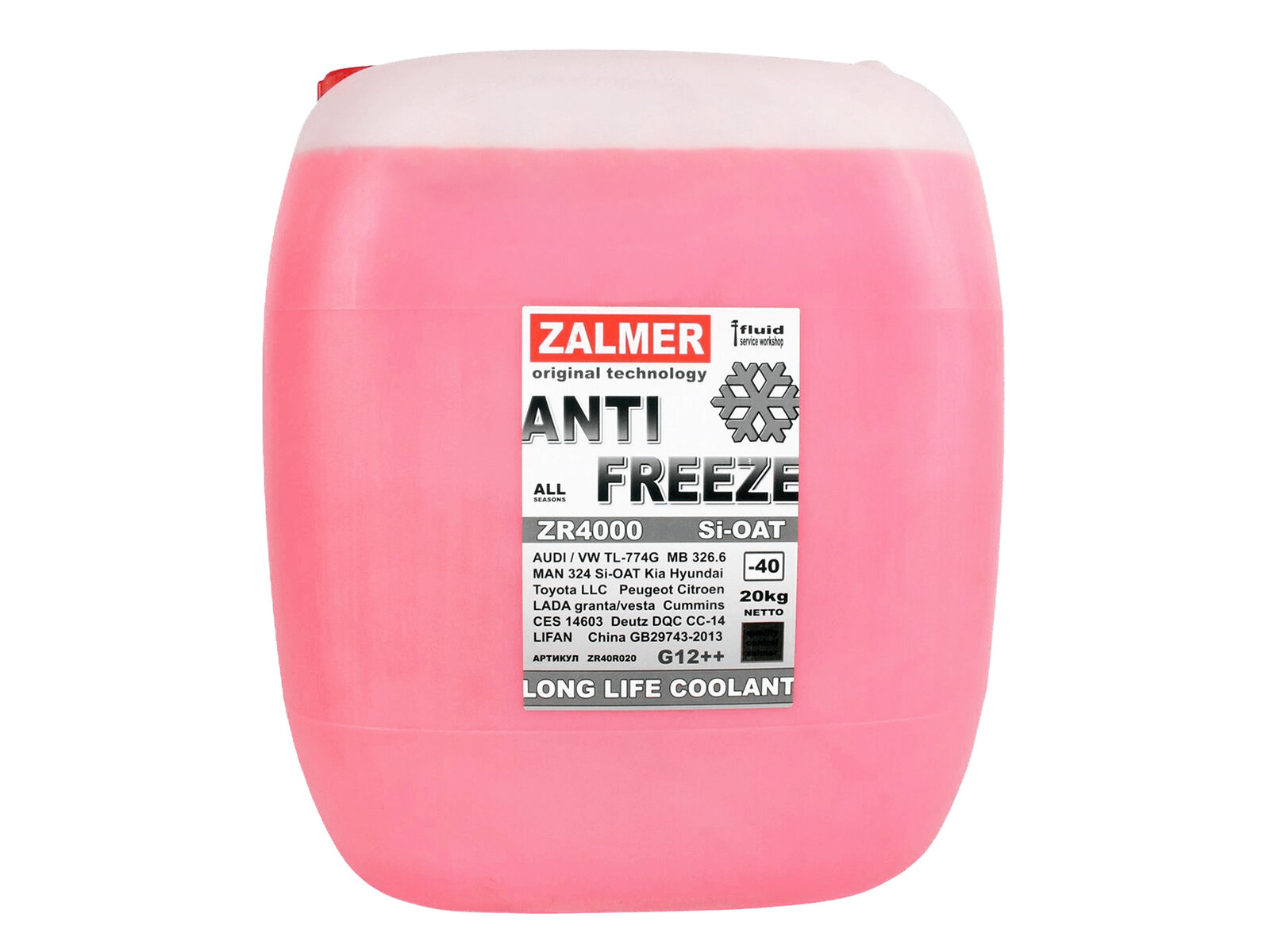 Антифриз Zalmer Antifreeze ZR4000 LLC G12+ красный -40с 20кг нетто ZR40R020 .