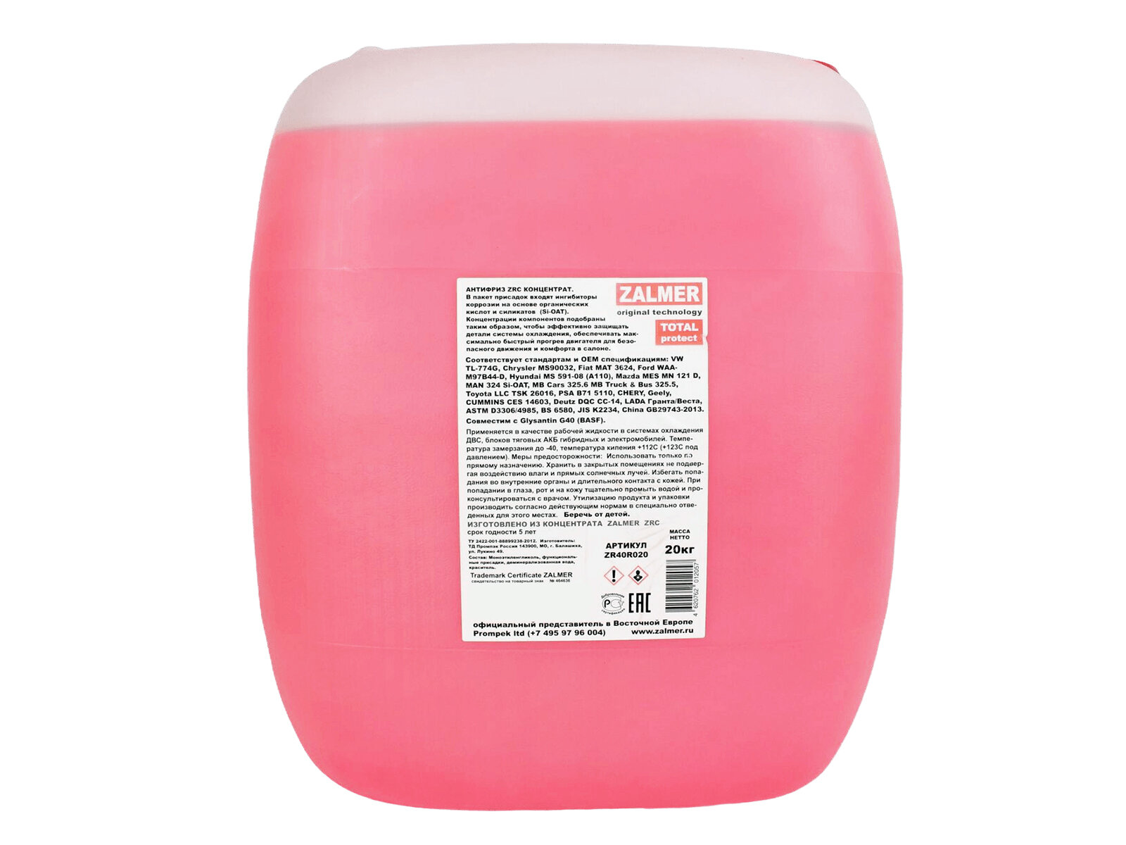 Ниже Вы можете прочитать отзывы на Антифриз ZALMER ZR4000 G12+ красный 20кг, ознакомится с подробными характеристиками, посмотреть интересные обзоры и фотографии на Антифриз ZALMER ZR4000 G12+ красный 20кг.
