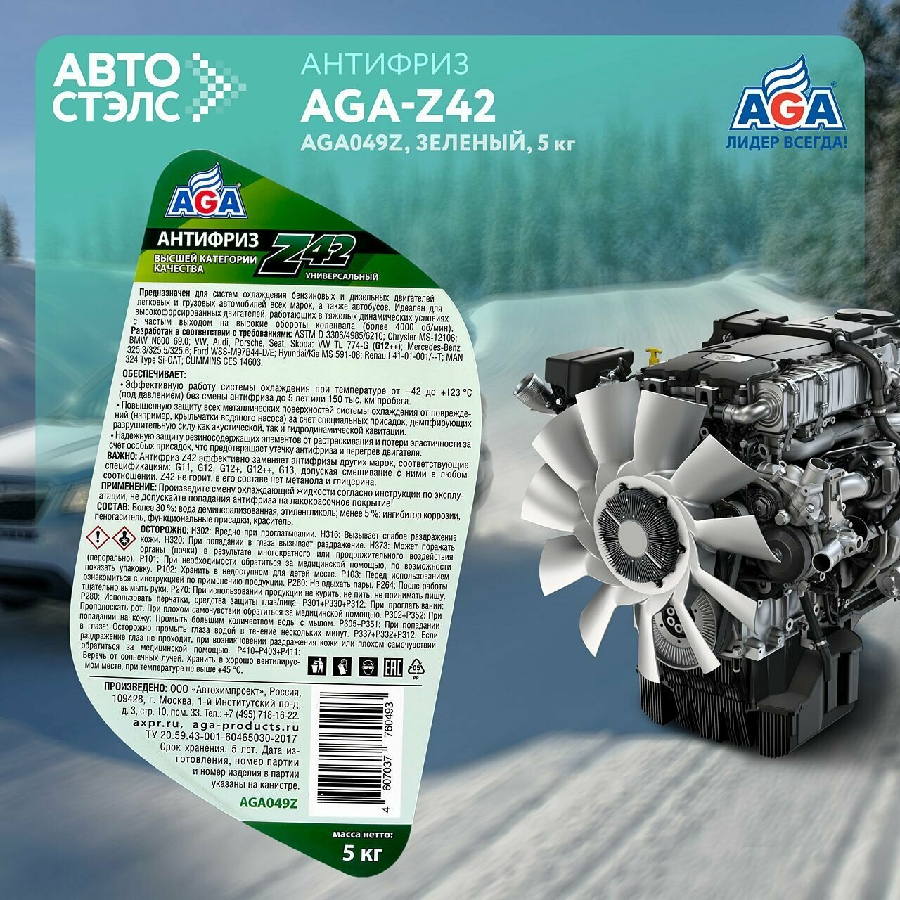 Антифриз Aga Z-42 Зеленый (5 Кг) 049z AGA арт. AGA049Z