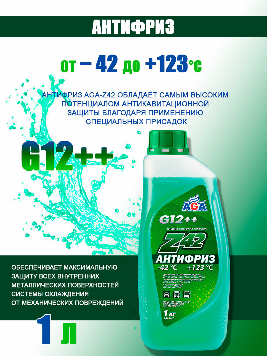 AGA AGA048Z Антифриз, готовый к применению, зеленый, -42С, 1 кг, G-12++