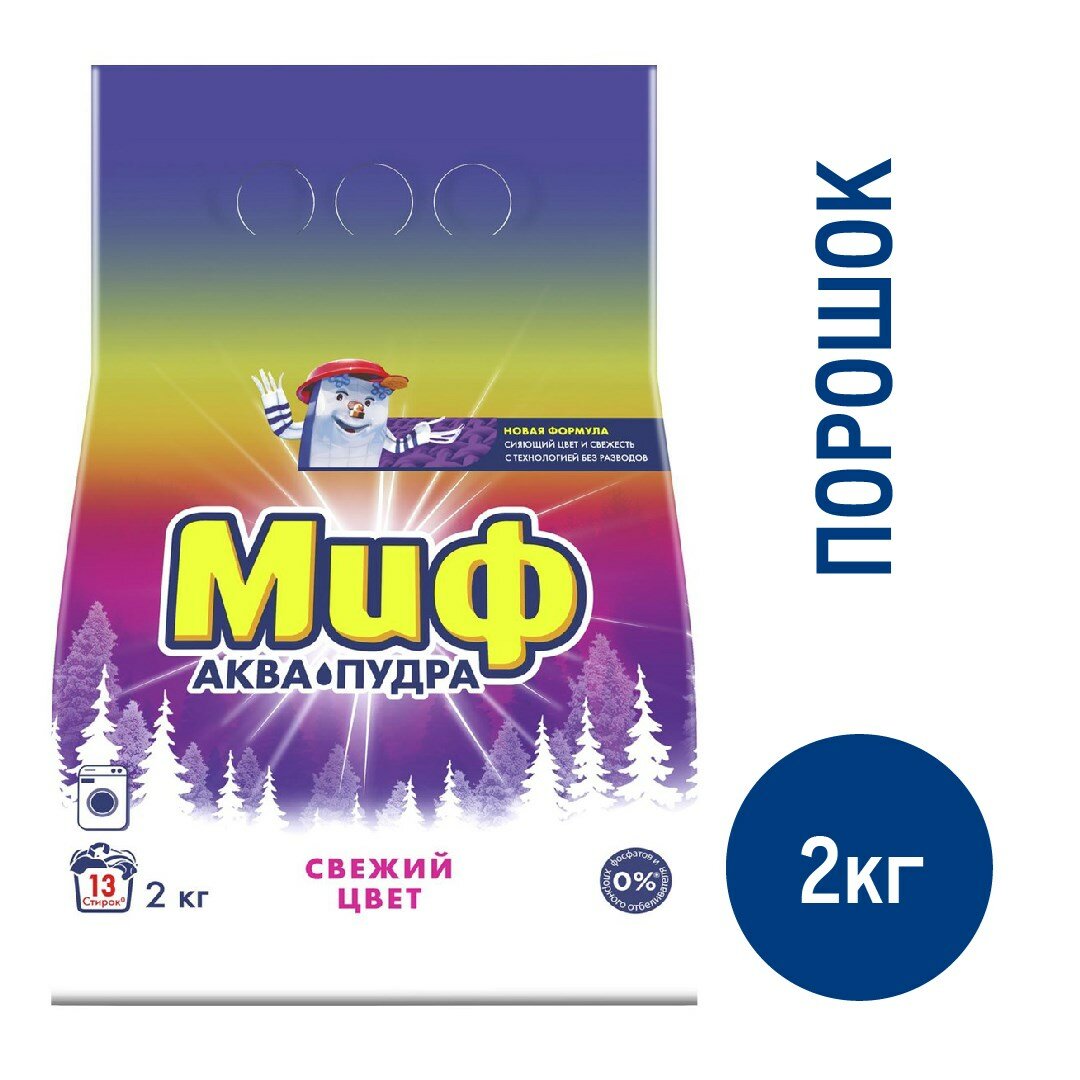 Стиральный порошок Миф Аквапудра Свежий цвет, автомат, 2 кг