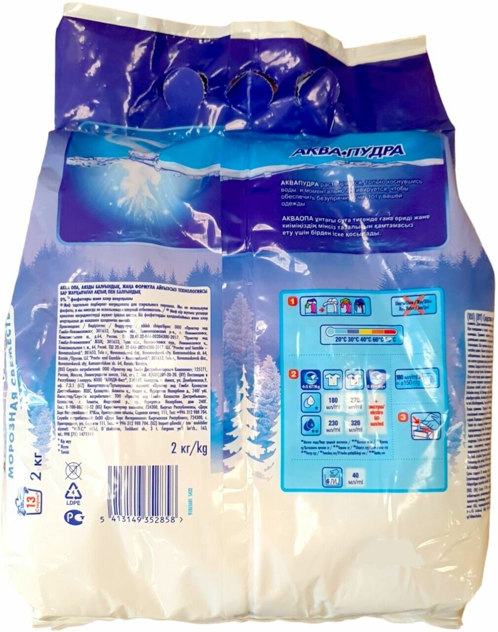 Комплект 2 шт, Порошок для машинной стирки Миф Аквапудра Морозная Свежесть, 2кг