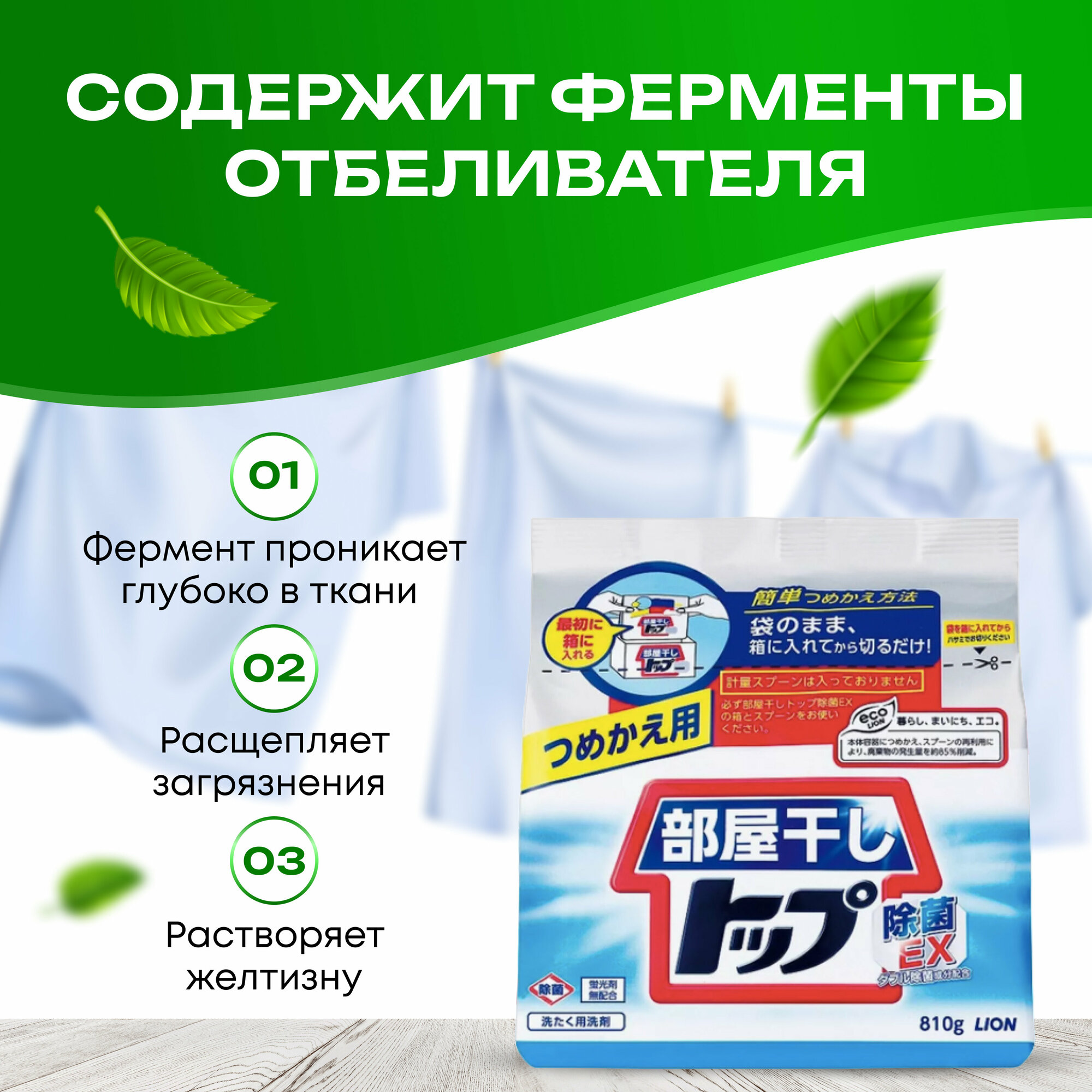 LION Японский стиральный порошок ТОП - сухое белье для сушки белья в помещениях, "Top for Rooms", 810 гр. (м/у)