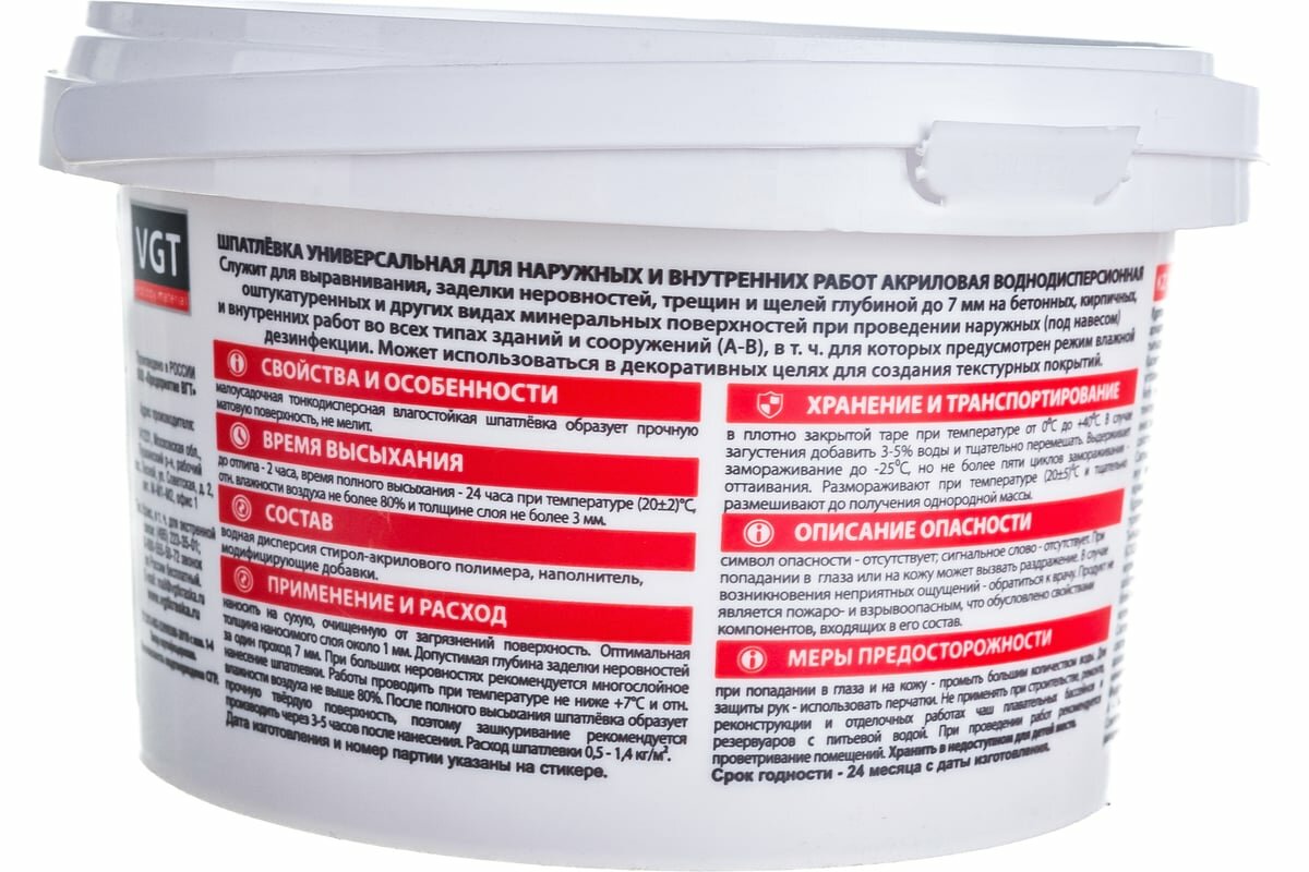 VGT ВГТ Шпатлёвка Универсальная акрил, для внутр, и наруж, работ 1,7кг,