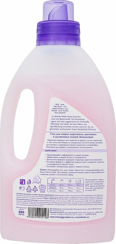 MEINE LIEBE Гель для стирки шерстяных, шелковых и деликатных тканей 800 мл